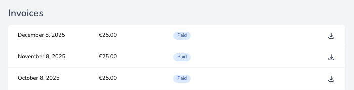 Then, navigate to the bottom of the screen to find the downloadable invoices.
